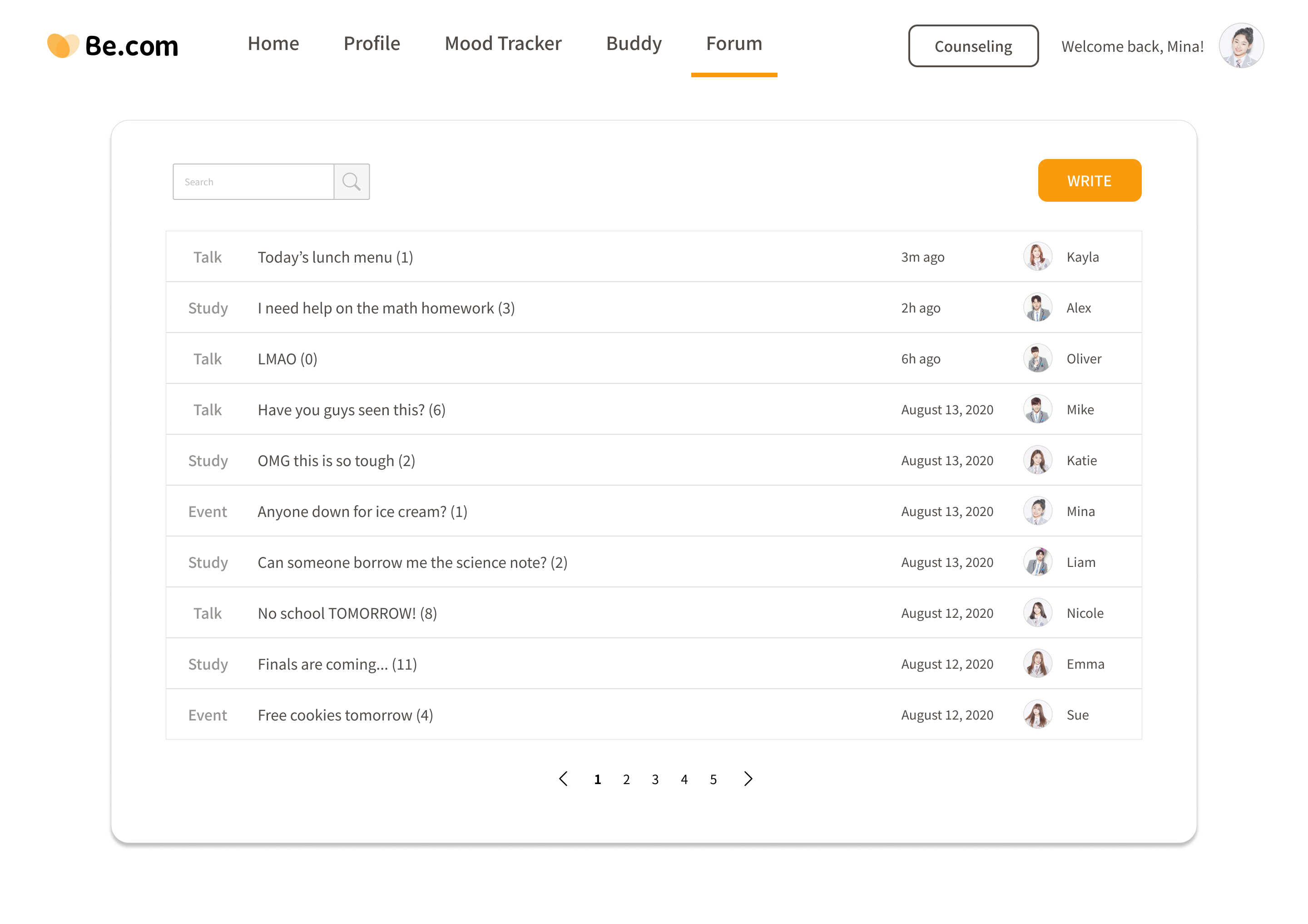 The counseling button directly takes you to the page where students can apply for counseling with their teachers or counselors. Since one of the goals of this solution was to make counseling more accessible and easy to apply to students, I decided to make the button visible on every page and distinct from other menus.